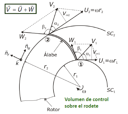 Figura 1 Triángulo de velocidades utilizado para el diseño mecánico del impeller.